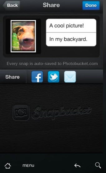 Nata come versione mobile di Photobucket, Snapbucket è diventata presto un'app molto popolare per l'editing fotografico sul cellulare. Facilissima da usare e graficamente accattivante, Snapbucket ti permette di applicare alle tue foto tantissimi filtri. Poi basta un click per condividere lo scatto su Facebook, Twitter e nell'archivio di Photobucket.